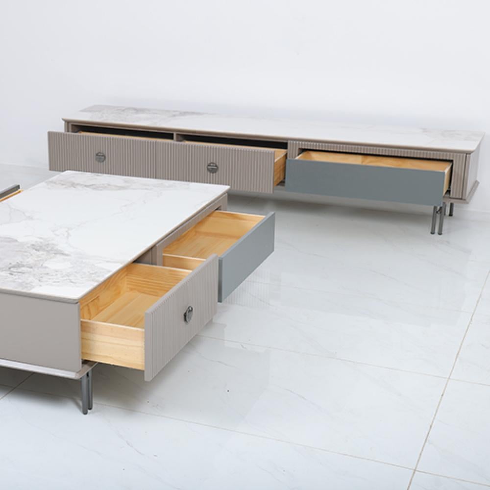 بكج باور فيشن طاولة قهوة مع طاولة تلفاز مجموعة أثاث أنيقة وعصرية تكمل أي غرفة معيشة. تتميز الطاولة بسطح رخامي وزجاجي عالي الجودة . وتتضمن ادراج تخزين ، هذه المجموعة متعددة الاستخدامات المميزة هي اللمسة النهائية التي يحتاجها ديكور منزلك ليكتمل