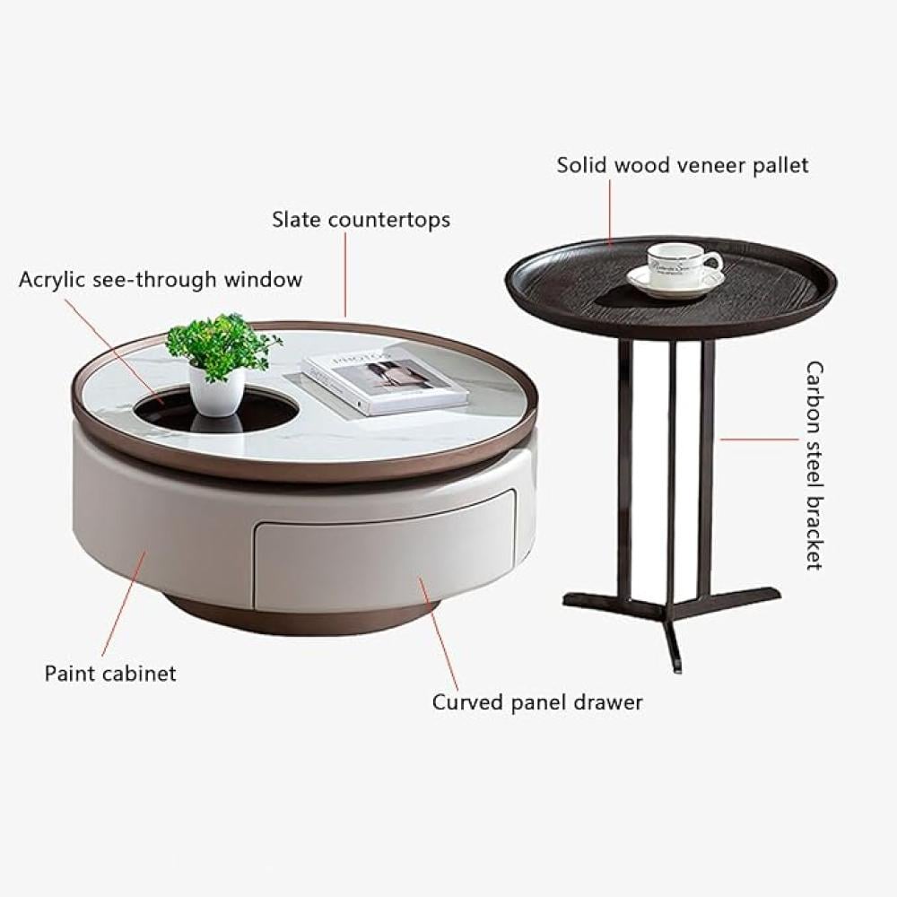 طاولة وايلد فيين ,تمتاز طاولات القهوة المزدوجة الفاخرة بتصميم عصري وأنيق، فهي مصنوعة من الخشب الفاخر باللون الابيض و مزيج من الالوان الرائعه.تمتاز بسطح دوار ودرج جانبيي مما يجعلها مناسبة للأماكن الصغيرة والكبيرة. تأتي الطاولة بتصميم عصري لمزيد من الأناقة والجمال، وتستطيع استخدامها كطاولة قهوة أو غرفة معيشة متعددة الاستخدامات. تأتي هذه الطاولة بفخامة وجمالية حقيقية لتكمل الديكور الخاص بك